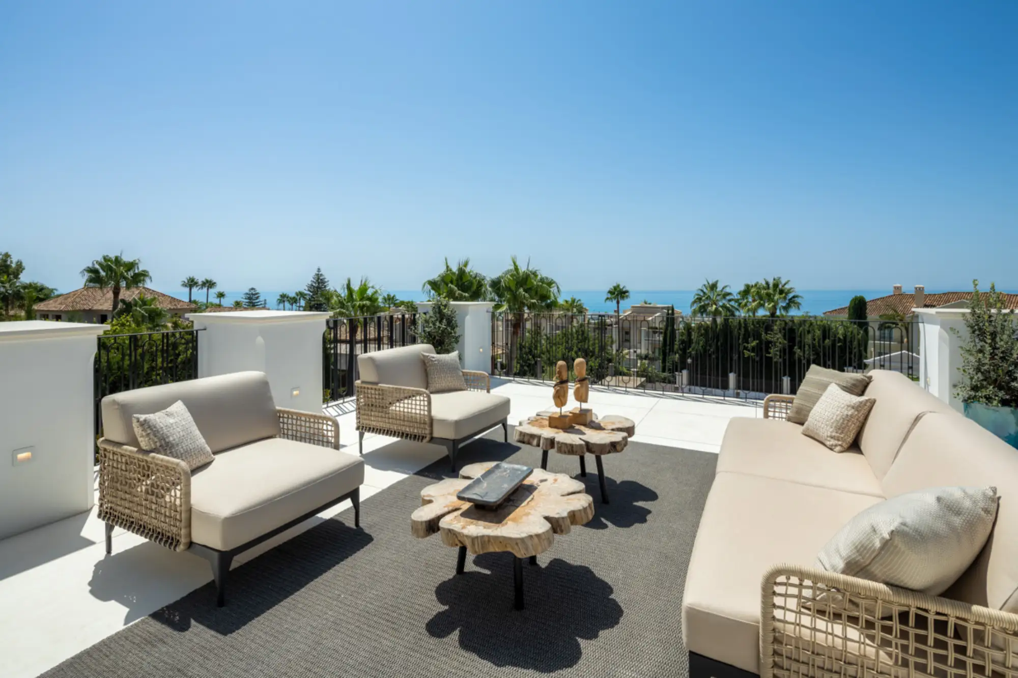 The 6-bedroom villa at Calle Rossini in Sierra Blanca, Marbella is a luxurious property that has been refurbished to the highest standards, offering a truly exceptional living experience. Situated in the prestigious area of Sierra Blanca, this villa boasts breathtaking open panoramic sea views.